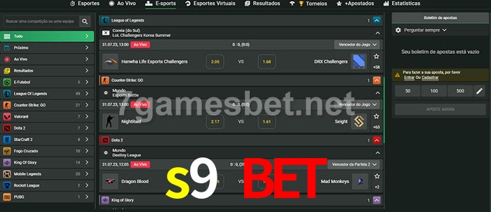 O s9 bet oferece uma grande seleção de opções de apostas em e-sports com probabilidades competitivas